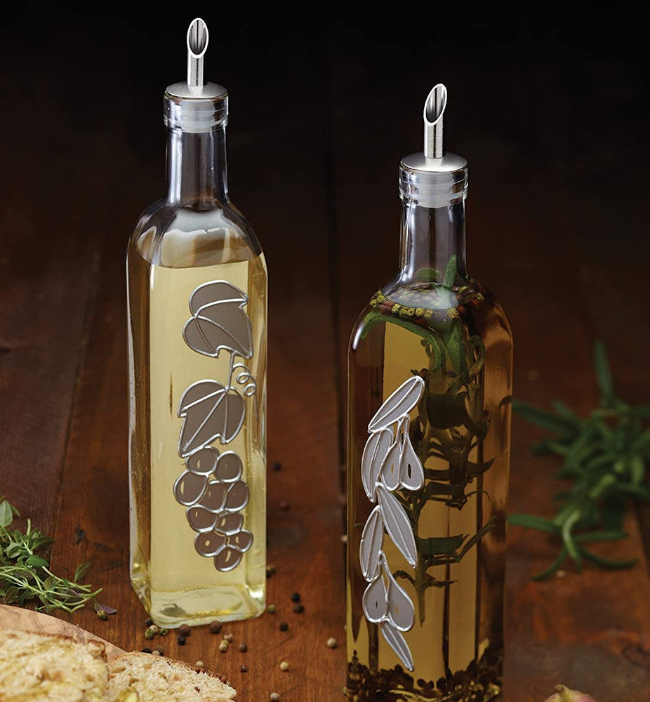 Italian Set of 2 Glass Oil and Vinegar Bottles