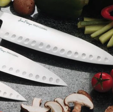 • Scalloped indents – Prevent food from sticking to the blade for smoother cutting