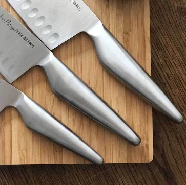 • Complete set – Includes 8” chef’s knife for carving and slicing meats, 6” chef’s knife for sandwiches, vegetables, and fish, and 4” chef’s knife for finely chopping herbs and fruits